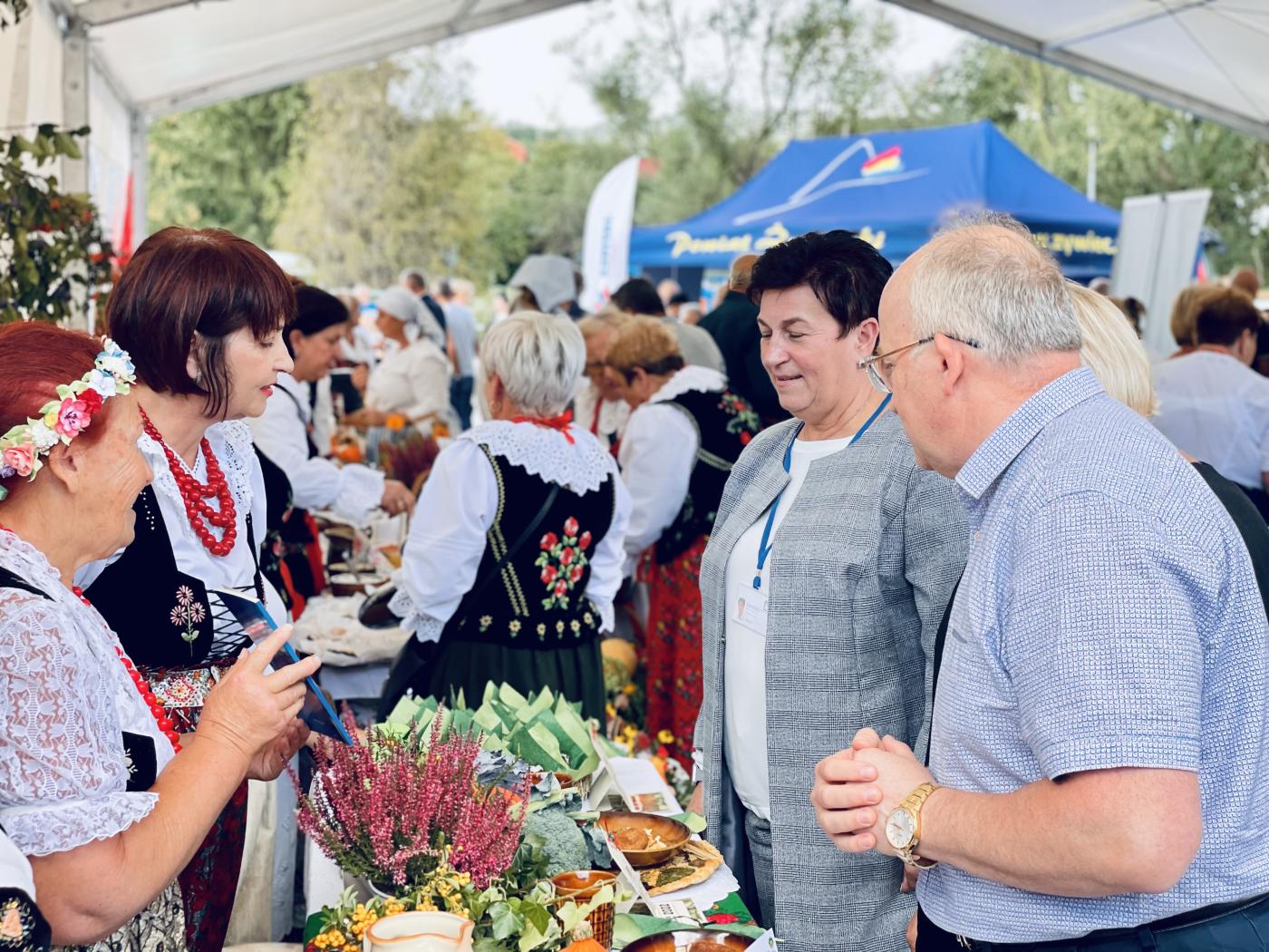 Pogoda uraczyła gości słoneczkiem, a uśmiechnięte Panie zachęcały do kosztowania prażuchów, gołąbków, gulaszy, serów, smalcu i mnóstwa innych smakołyków. Wśród zaproszonych gości pojawiło się wielu wspaniałych przyjaciół, rękodzielników, polityków. Zaszczycili swą obecnością minister Pan Grzegorz Puda, Sekretarz Stanu Pan Stanisław Szwed, Poseł Pan Przemysław Drabek, Radni Sejmiku Województwa Śląskiego - Pani Agnieszka Biegun i Pan Stanisław Baczyński, wójtowie z terenu Powiatu Żywieckiego, dyrektorzy KOWR oraz ARMiRu, senator Tadeusz Kopeć, Izabela Kloc Posłanka do Parlamentu Europejskiego, Starosta Powiatu Żywieckiego Andrzej Kalata, a także wiele znamienitych osób.