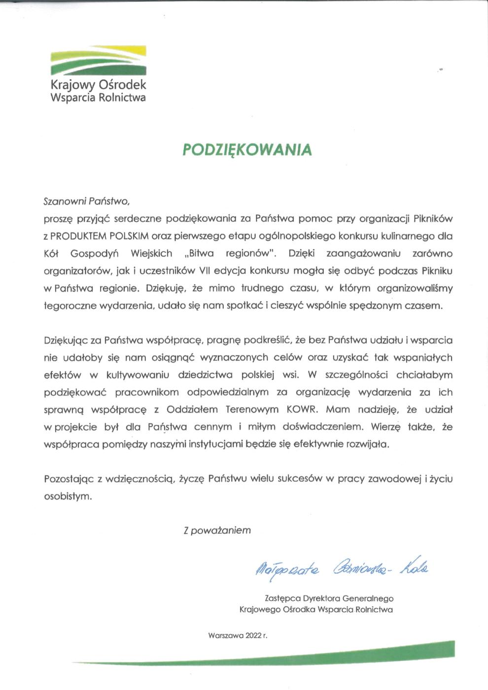 Krajowy Ośrodek Wsparcia Rolnictwa w Warszawie – Oddział Terenowy w Częstowchowie