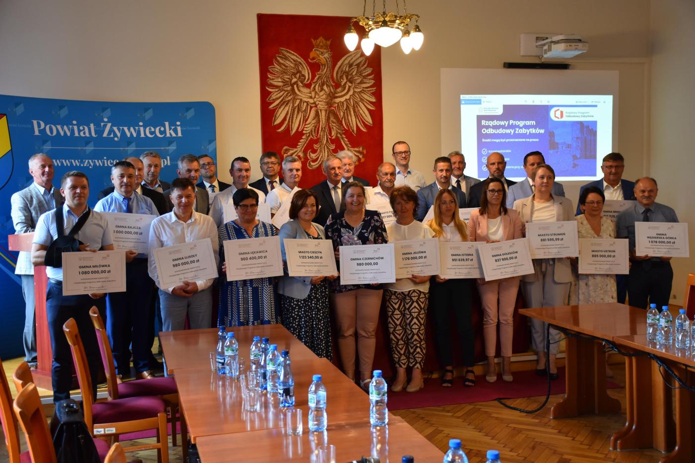 18 lipca odbyło się symboliczne wręczenie promes dotacyjnych w Starostwie Powiatowym w Żywcu, gdzie samorządy z powiatów żywieckiego i cieszyńskiego otrzymały dotacje na remont lub odbudowę zabytków. Program, który umożliwił te dofinansowania, nosi nazwę "Rządowy Program Odbudowy Zabytków" i przeznaczono na niego ponad 2,5 miliarda złotych w całej Polsce.