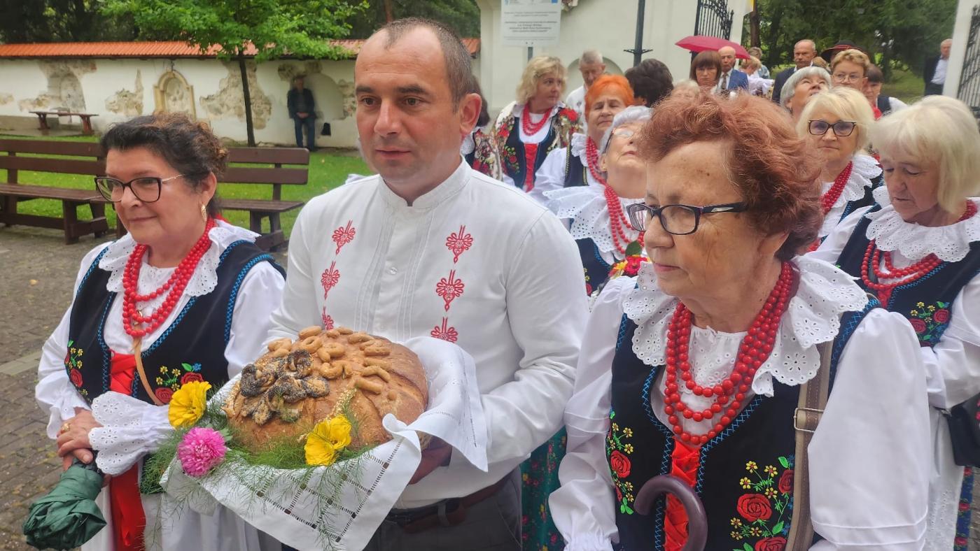Członkinie KGW Rychwałd zaprezentowały krótki występ artystyczny, podczas którego odśpiewano dawne utwory ludowe charakterystyczne dla naszego regionu. Kulminacyjnym momentem było symboliczne dzielenie się chlebem, jako wyraz wspólnoty, wdzięczności i szacunku dla ciężkiej pracy rolników.