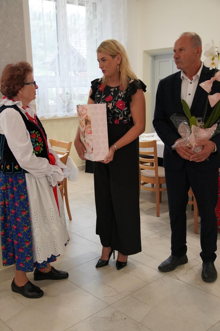 W imieniu władz Gminy Gilowice, v-ce Przewodniczący pan Piotr Harędziński oraz dyrektor GOK w Gilowicach – Gabriela Kolonko przekazali serdeczne podziękowania i życzenia dla wszystkich uczestników wydarzenia. Szczególne słowa uznania i gorące życzenia popłynęły w stronę Pani Marii Grzegorzek, przewodniczącej KGW Rychwałd, która obchodziła swoje 70. urodziny. Jej długoletnia praca na rzecz lokalnej społeczności i kultywowanie tradycji zostały uhonorowane gromkimi brawami i głośnym 100 lat.