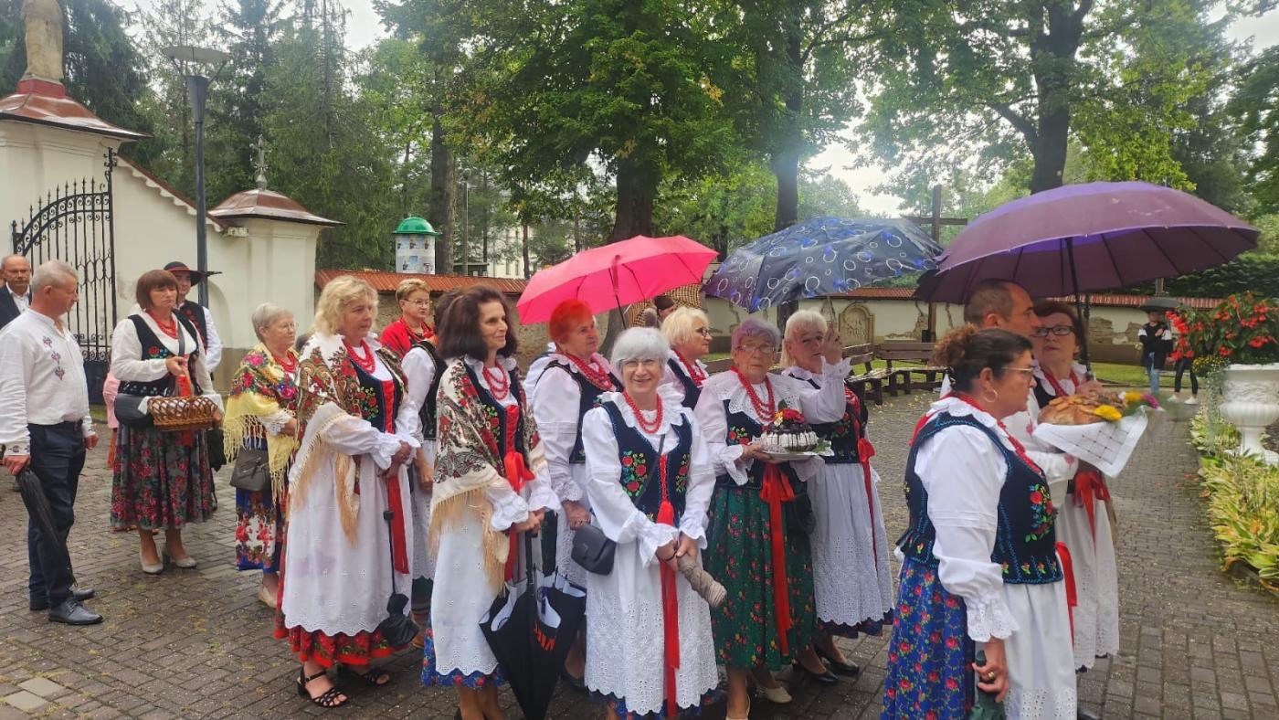 Uroczystość rozpoczęła się przemarszem spod Domu Ludowego do Sanktuarium Matki Bożej w Rychwałdzie na uroczystą Eucharystię sprawowaną przez proboszcza o. Przemysława Janika. Była to wyjątkowa okazja do podziękowania za zebrane plony, ale także do wspólnego świętowania i pielęgnowania lokalnych tradycji. Przy wyjściu z kościoła gospodynie częstowały wszystkich regionalnymi wypiekami.