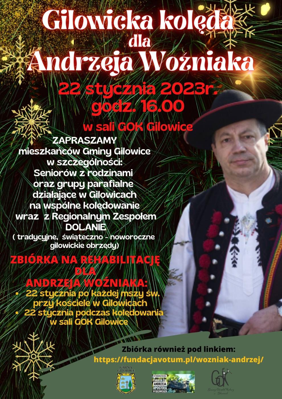 17.01.2023 Gilowicka kolęda dla Andrzeja Woźniaka Zapraszamy na wspólne kolędowanie. Wydarzenie połączone ze zbiórką na rehabilitację dla Andrzeja Wożniaka. Szczegóły na plakacie. Galeria zdjęć Kliknij w zdjęcie, aby je powiększyć. Wróć do listy Poprzedni Następny Drukuj