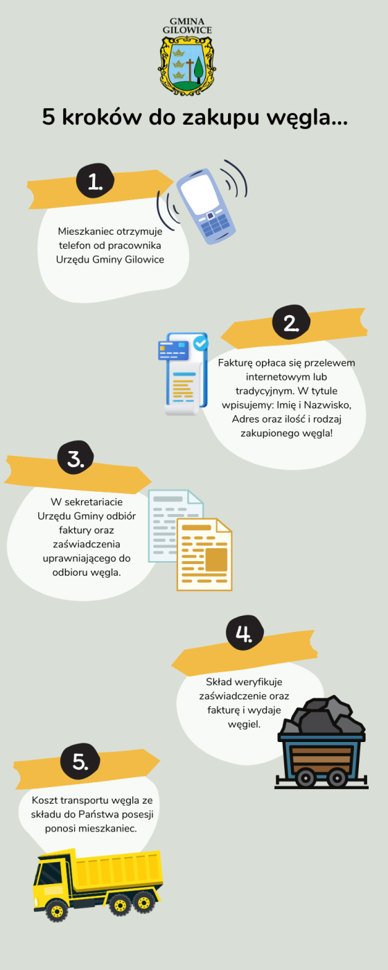 Urząd Gminy Gilowice skontaktuje się telefonicznie z Państwem (osoby, które złożyły wniosek o zapotrzebowaniu na węgiel wg kolejności wpływu do Urzędu) i przedstawi dalszą procedurę w celu sfinalizowania zakupu węgla. Należy w ciągu 3 dni dokonać zapłaty. Fakturę można opłacić przelewem internetowym lub tradycyjnym (UWAGA! Za moment wpłaty uznaje się wpływ pieniędzy na konto Urzędu Gminy, a nie moment wysłania przelewu).