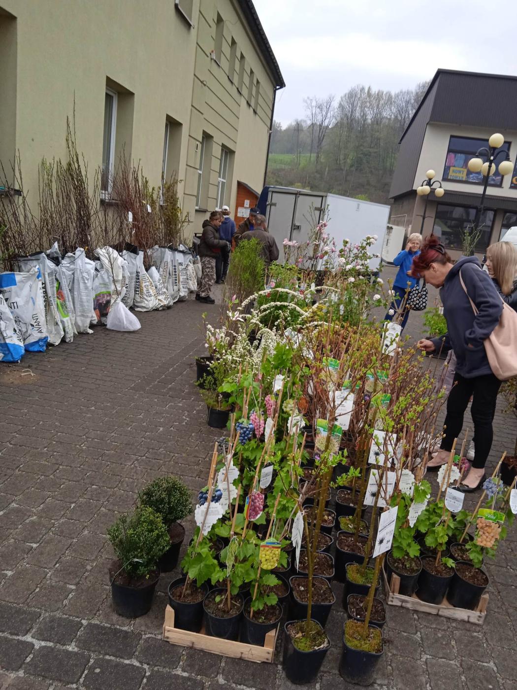 W ofercie były: drzewka owocowe, krzewy, sadzonki i kwiaty doniczkowe - szeroki wachlarz przyciągnął licznych kupujących.