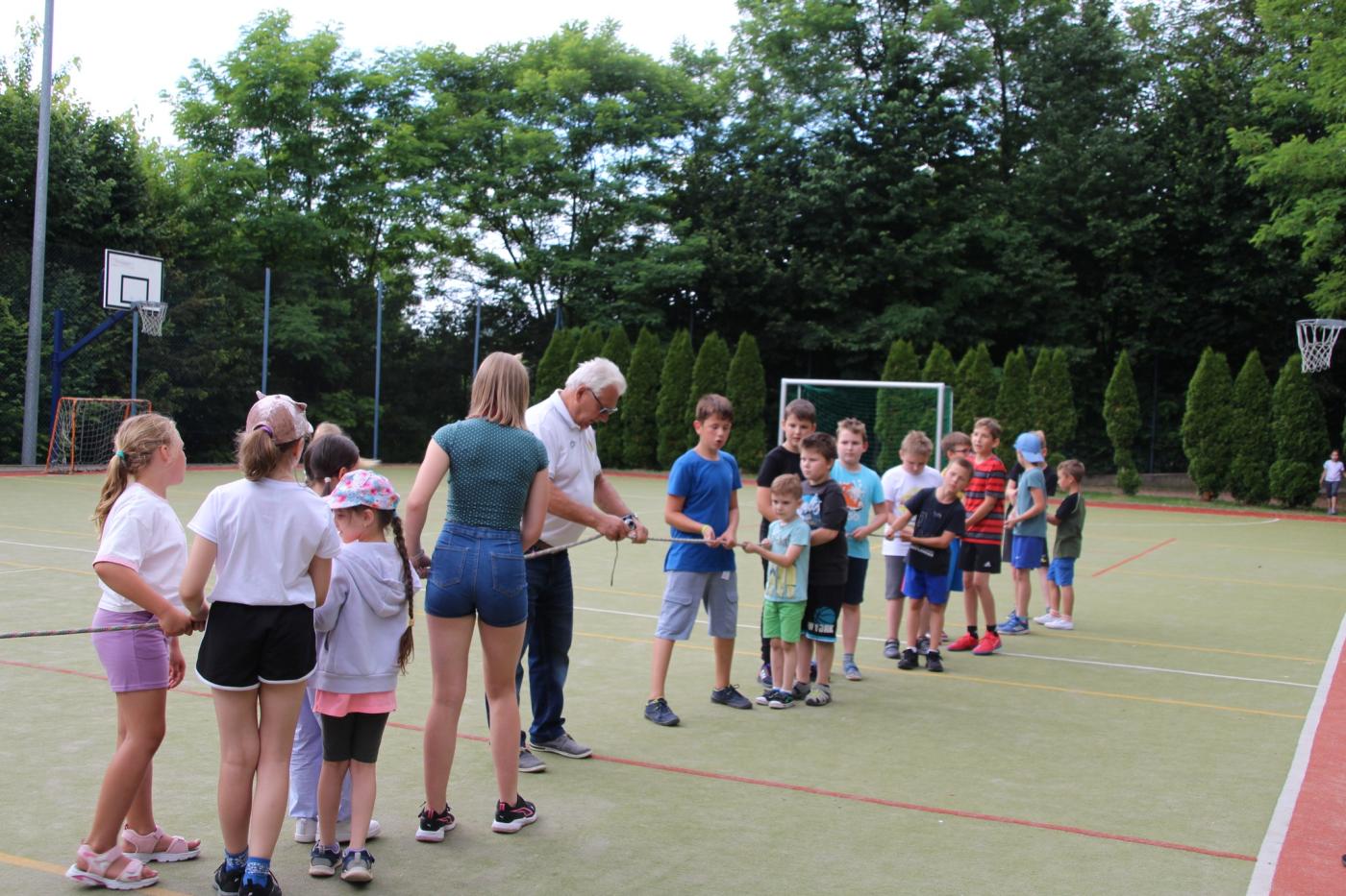 Dzieci rywalizowały ze sobą w zawodach rzucania woreczkami oraz podkowami, dodatkowo poznały grę w boule, brały udział w zawodach pływackich oraz rozegrały mecze piłki nożnej. Za przeprowadzenie rozgrywek sportowych serdecznie dziękujemy panu Henrykowi Pasko razem z PKS “Olimpijczyk” Gilowice.