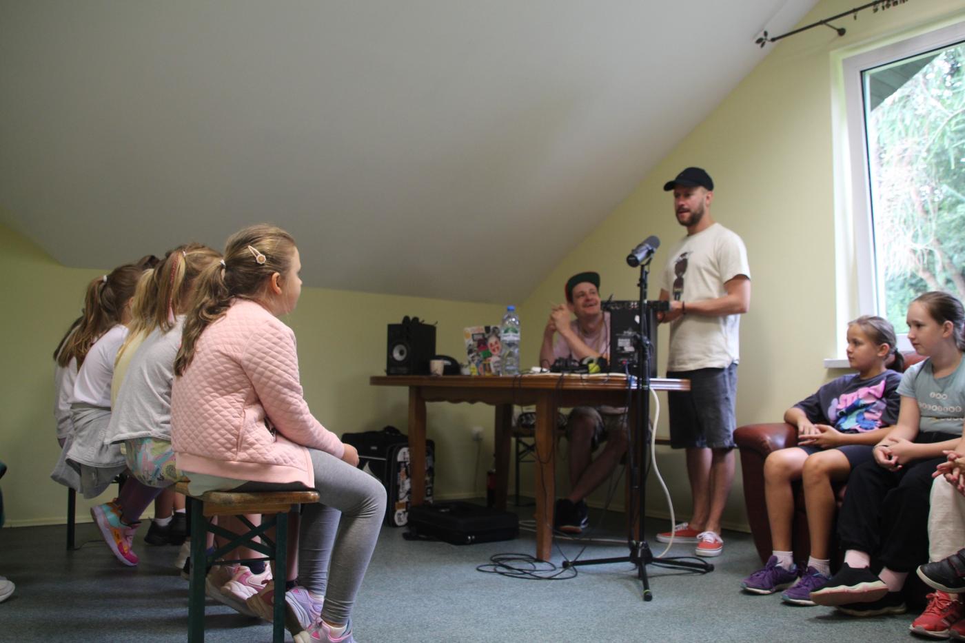 Podczas warsztatów muzycznych dzieci pod okiem instruktorów Dawid Falędysz oraz Michał Michos Kubica nagrały piosenkę o bezpieczeństwie w ruchu drogowym. Dziękujemy muzykom oraz pani Izabeli Pyclik dyrektor GBP w Gilowicach sprawującej pieczę nad II Programem Grantowym Drogowskaz, w ramach którego możliwe było zorganizowanie warsztatów.