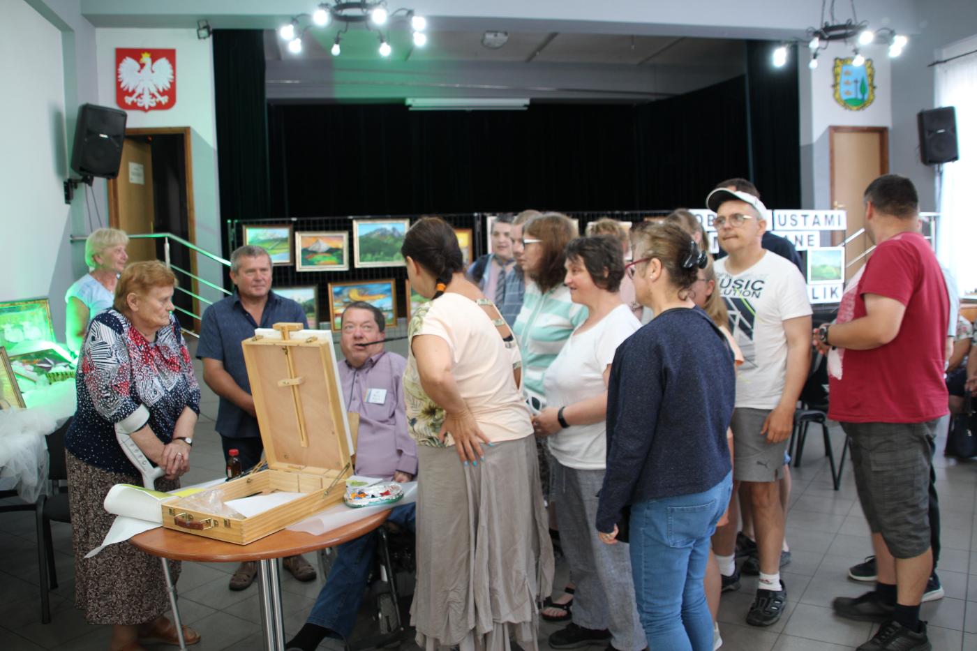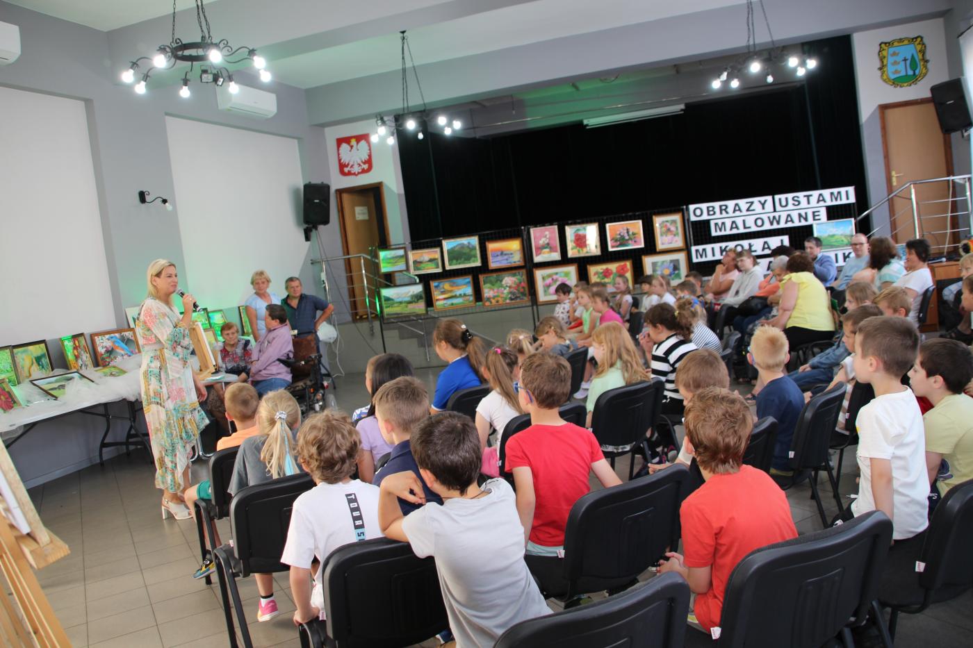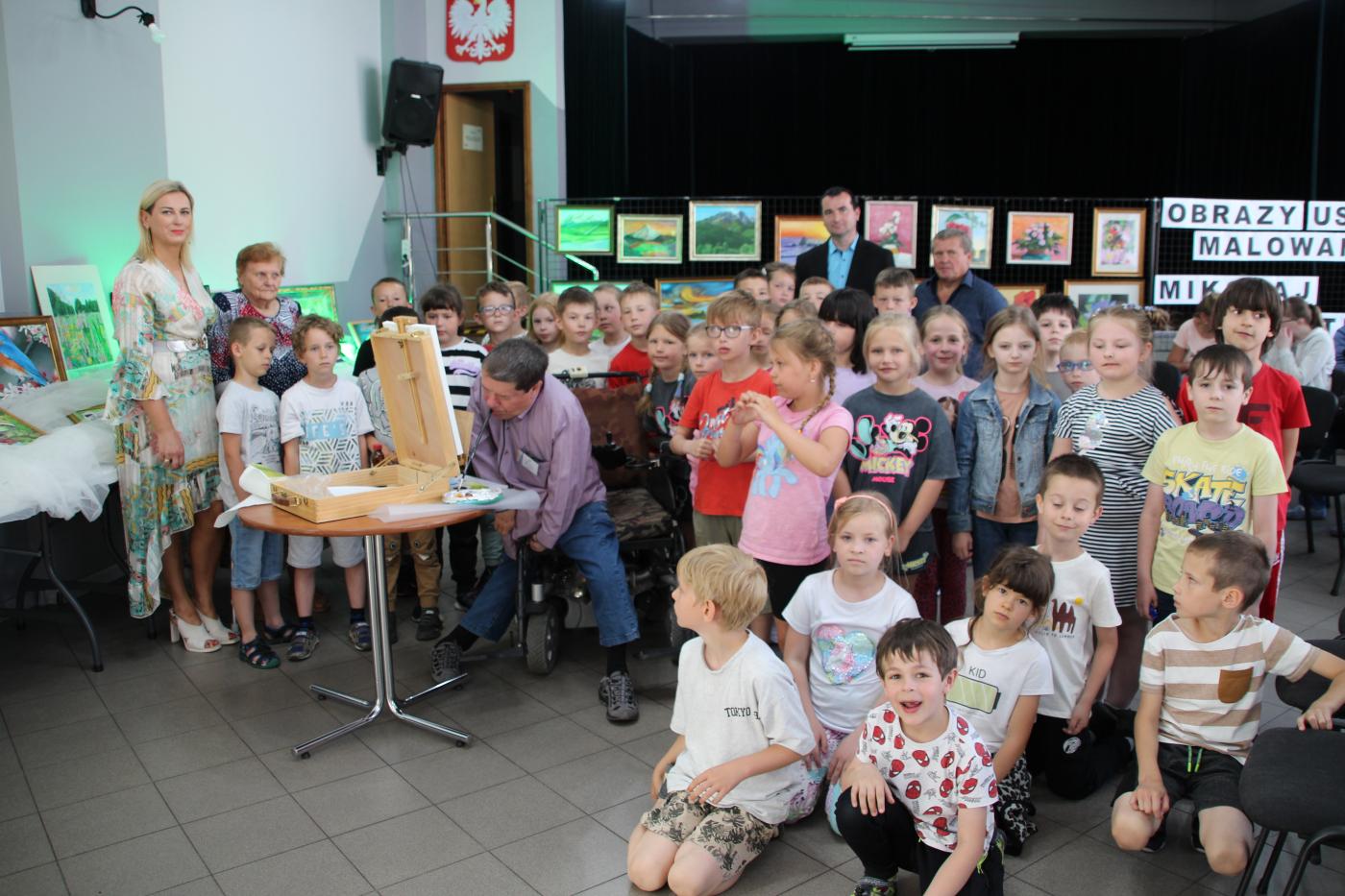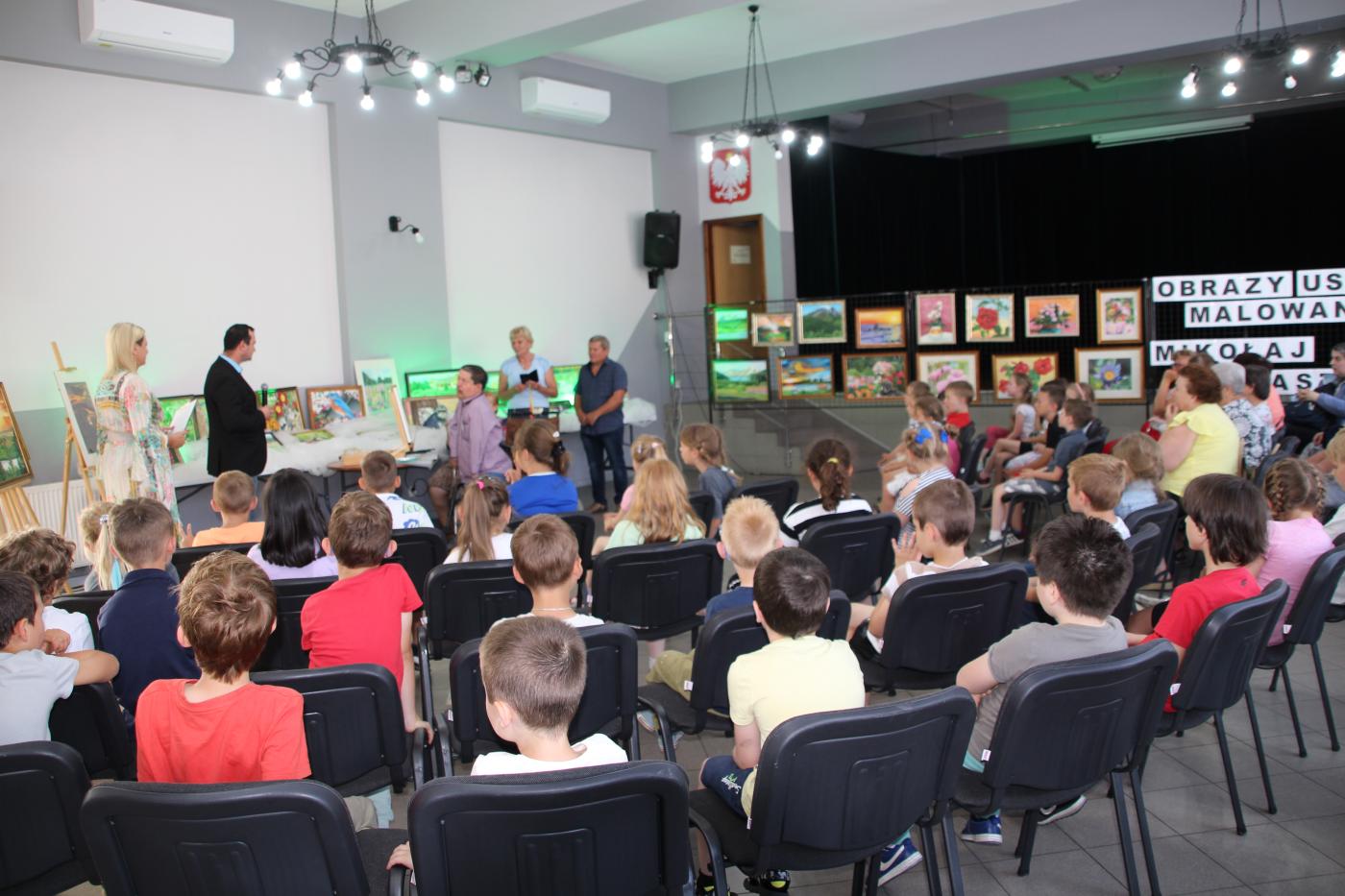 Ranek 20 czerwca br. w Gminnym Ośrodku Kultury - niecodzienne wydarzenie – wernisaż wystawy malarskiej Mikołaja Kastelika. Cała sala wypełniona po brzegi. Przybyli goście to uczniowie Szkoły Podstawowej w Gilowicach, seniorzy oraz uczestnicy Terapii Zajęciowej w Gilowicach. Ci ostatni to przyjaciele autora cudownych obrazów przedstawiających krajobrazy, zwierzęta i kwiaty.