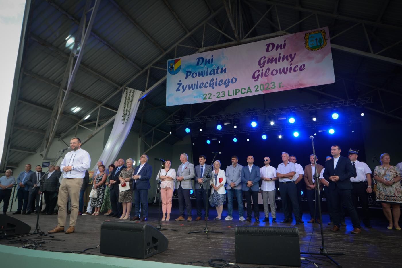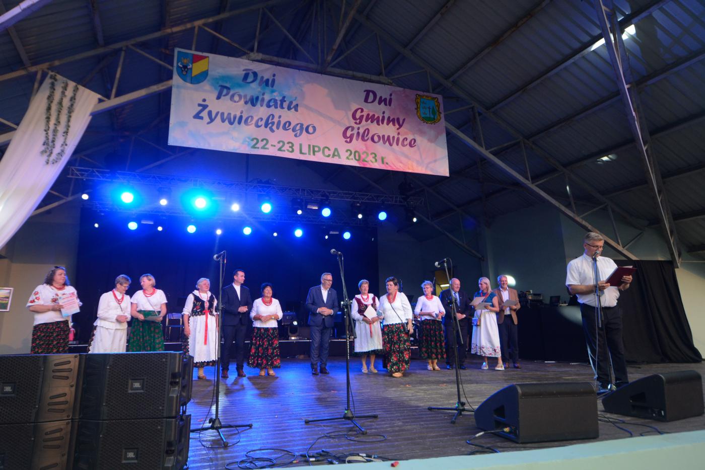 Występem Regionalnego Zespołu „Dolanie” z Gilowic nastąpiło oficjalne rozpoczęcie Dni Powiatu Żywieckiego oraz Powiatowego Przeglądu Potraw Regionalnych pn. „Próbowacka Jodła Beskidzkiego”, Uczestników imprezy i zebraną publiczność przywitali gospodarze imprezy: Starosta Żywiecki Andrzej Kalata oraz Wójt Gminy Gilowice Krzysztof Okrzesik.