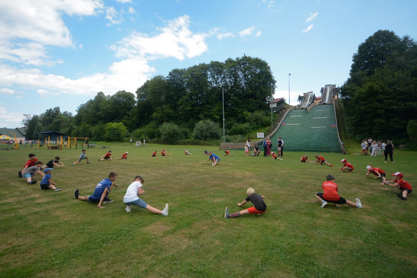 Niedzielne popołudnie rozpoczęło się na sportowo, gdzie na gilowickich skoczniach odbył się pokaz treningowy z udziałem dzieci z klubów z rocznika 2010 – 2017 z Klubów Klimczok Bystra, Sokół Szczyrk i BESKID Gilowice. Pokaz przygotowali Przemysław Kantyka z Witorem Pękala oraz rodzicami. Na treningu gościł również prezes klubu Sokół Szczyrk Wojciech Fickowski oraz rodzice zawodników.