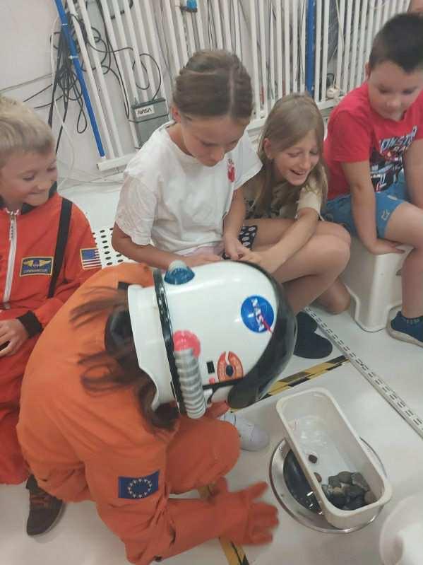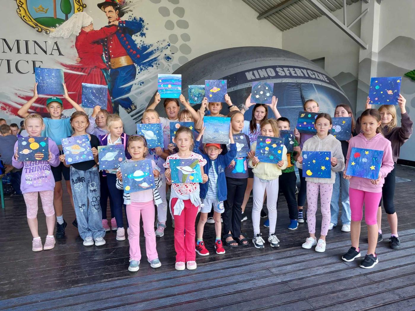 Sierpniowy wachlarz zajęć, także zapewniał wiele atrakcji. Odbyły sie zajęcia plastyczne, gdzie dzieci zainspirowane wszechświatem, na podobraziach stworzyły piękne "kosmiczne" obrazy. To był bardzo dobry początek tej przygody, gdyż podczas kina sferycznego jedna z grup dzieci, pod specjalną kopułą mogła przeżyć podróż wśród planet, a druga w głębie oceanu. Kolejna grupa dzieci, dzięki wakacyjnemu programowi przeżyła ogrom wrażeń uczestnicząc w "locie w kosmos" z Młodzieżowej Stacji YSS w Sopotni Wielkiej, gdzie zostaliśmy serdecznie przywitani przez prowadzących i zarażeni pasją o kosmosie. W tym bloku zajęć nie zabrakło także aktywności fizycznej, a w tym I Dziecięcego Turnieju w bule, który przeprowadzili gilowiccy mistrzowie tej gry, Państwo Barbara i Wiesław Folęgowie. Kolejny dzień, to wartościowe spotkanie z kulturą i tradycja: warsztaty w Skansenie Parku Etnograficznego w Ślemieniu, gdzie dzieci malowały drewniane koniki, a następnie podczas zwiedzania zabytkowych chat, odgadywały znaczenie poszczególnych dawnych przyrządów gospodarstwa i rolnictwa naszego regionu. Podsumowaniem wakacyjnych zajęć z GOK i PKS Olipijczyk, było Letnie kino plenerowe, na które zostały zaproszone dzieci i młodzież wraz ze swoimi rodzicami i rodzeństwem, oraz mieszkańcy gminy, którzy chcieli zakończyć tą wakacyjną przygodę wspólnie spędzonym czasem, oglądając film Rodzina od zaraz. W tym dniu, odbyły się także warsztaty z bezpieczeństwa w ruchu drogowym z naciskiem na bezpieczną jazdę na hulajnogach i rowerach przez najmłodszych.