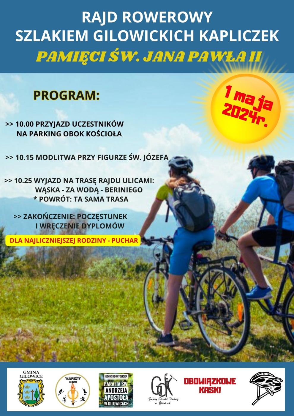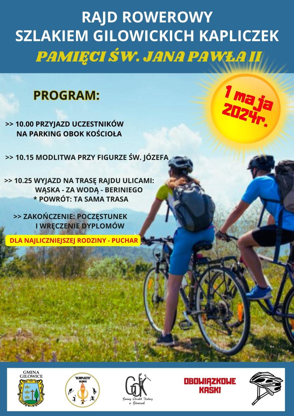 23.04.2024 RAJD ROWEROWY Zapraszamy do udziału. Szczegóły na plakacie. Galeria zdjęć Kliknij w zdjęcie, aby je powiększyć. Wróć do listy Poprzedni Następny Drukuj