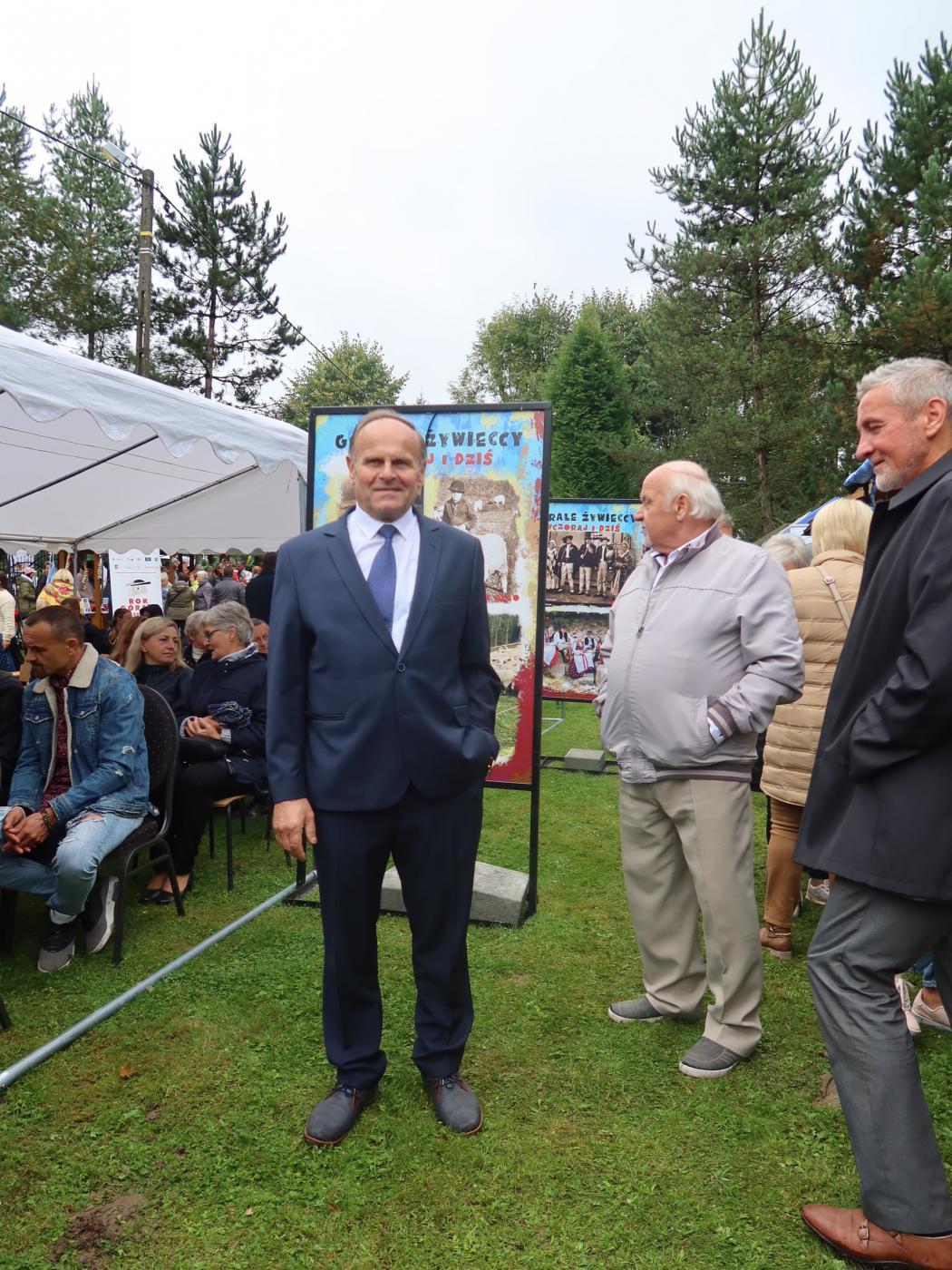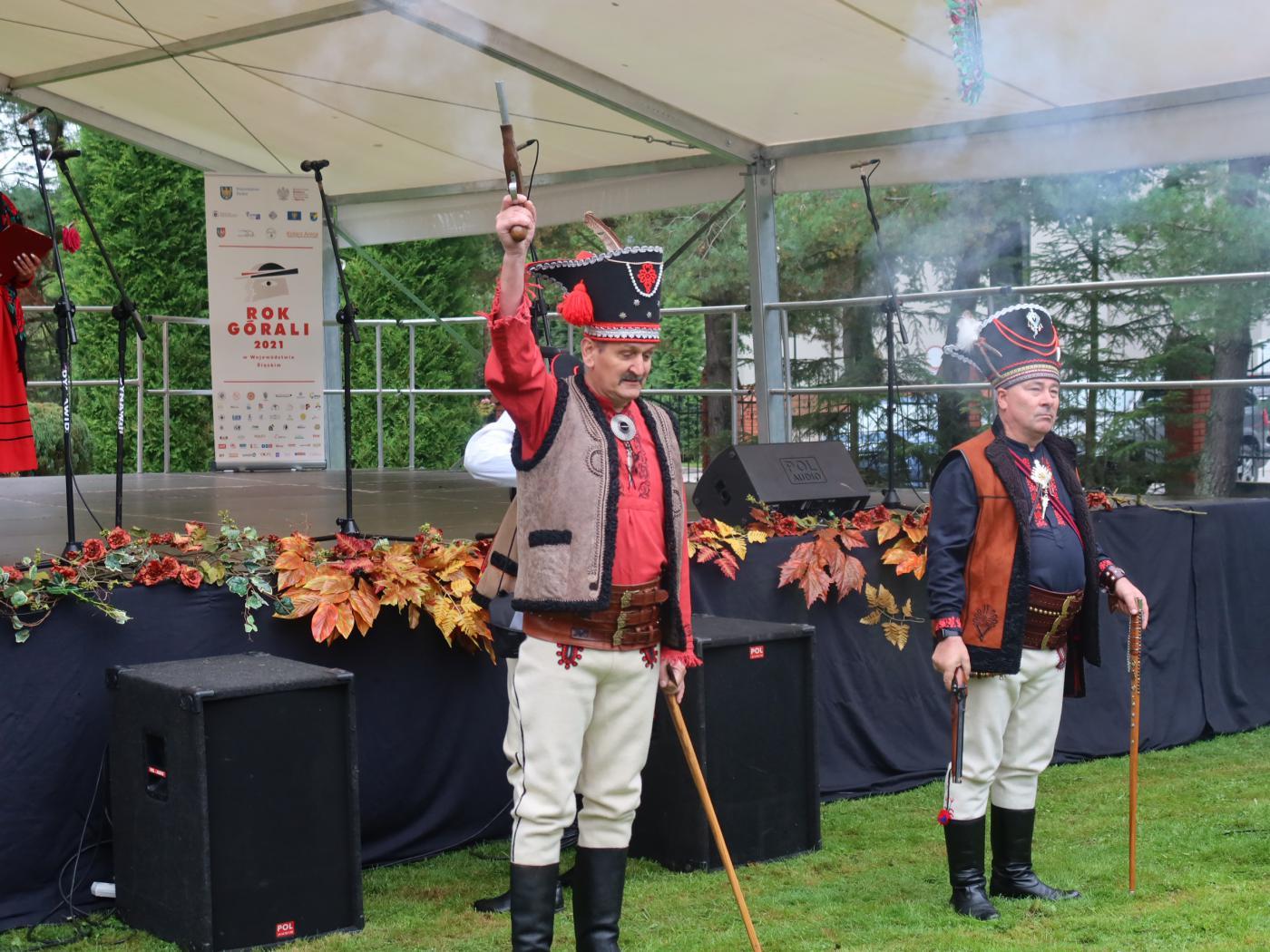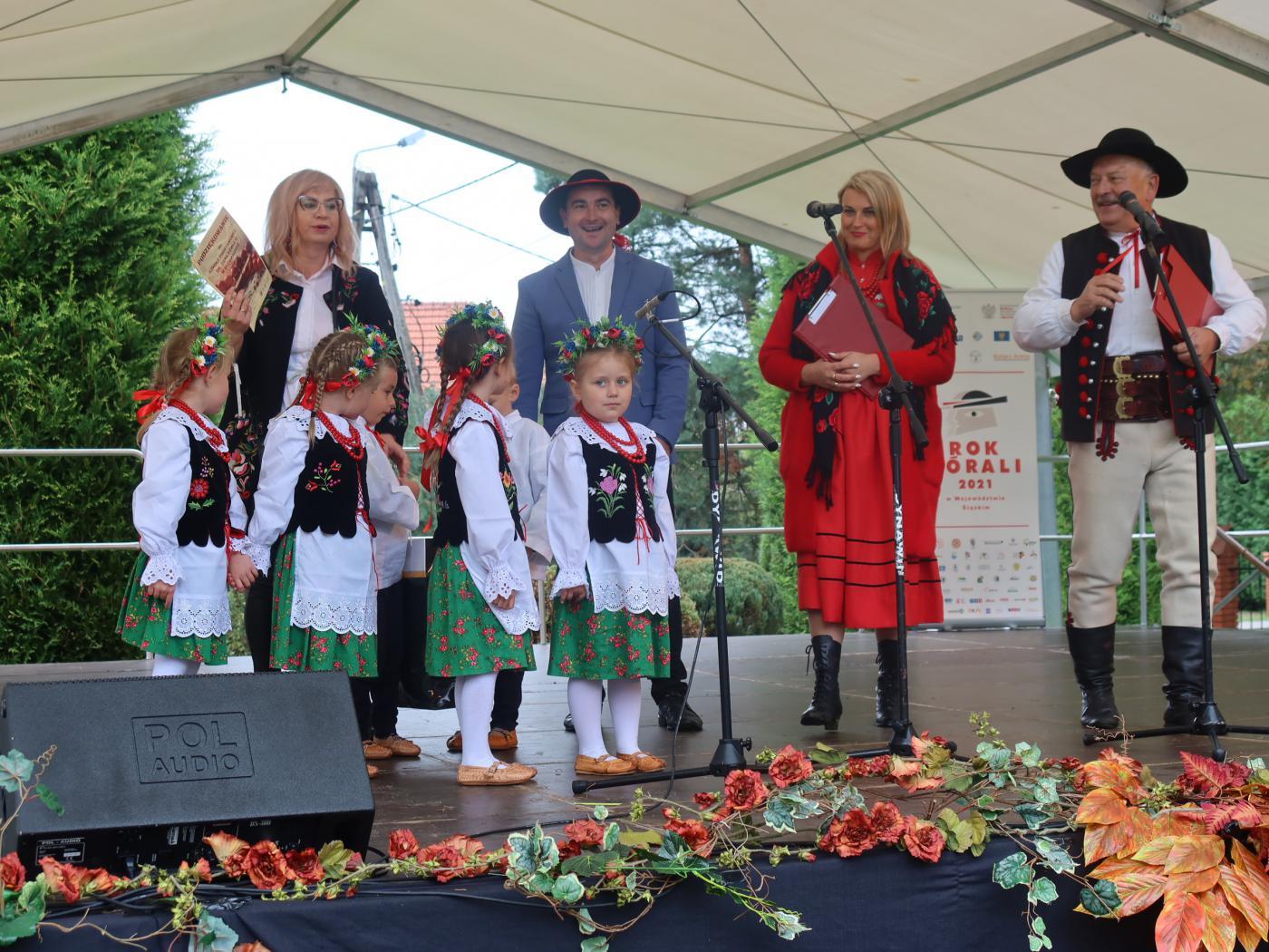 „RÓŻNIMY SIĘ PIKNIE” to wielkie święto wszystkich górali, które odbyło się w Rychwałdzie, 19 września 2021 roku. Uroczystość rozpoczęto Mszą świętą w oprawie góralskiej. Przed niedzielnym południem rychwałdzka Bazylika Mniejsza zapełniła się wiernymi w strojach regionalnych, a wnętrze rozbrzmiało wśród sztandarów słowami modlitw i pieśni w gwarze. Następnie dźwięki trombity i Pan Andrzej Maciejowski z Panią Gabrielą Kolonko ogłosili rozpoczęcie części artystycznej. W przepięknych ogrodach franciszkańskich pomimo zimna zebrała się publiczność, spragniona góralskich wrażeń. Licznie przybyli zaproszeni goście, władze państwowe i samorządowe, a wśród nich Pan Przemysław Drabek poseł na sejm RP, Radni Sejmiku Województwa Śląskiego: Pani Agnieszka Biegun oraz Pan Stanisław Baczyński, v-ce starosta Powiatu Żywieckiego Pan Stanisław Kucharczyk, gospodarz gminy Gilowice – wójt Pan Krzysztof Okrzesik wraz z radnymi, wójtowie z gmin: Jeleśnia Pani Anna Wasilewska oraz Lipowa Pan Jan Góra, a także dyrektor ROK w Bielsku – Białej Pan Lesław Werpachowski, Bogusław Lalik – pomysłodawca ROKU GÓRALI W WOJEWÓDZTWIE ŚLĄSKIM, dyrektorzy placówek oświatowych, przedstawiciele stowarzyszeń i kół z całej gminy