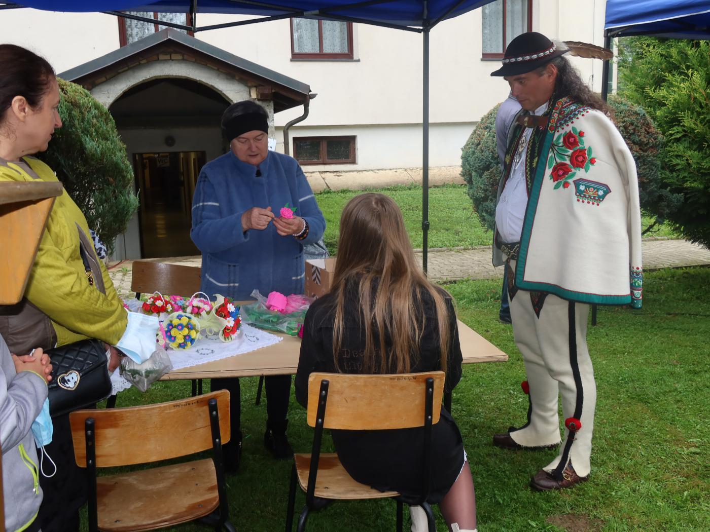 Dotarli również twórcy ludowi z warsztatami, którzy przekazywali swoje umiejętności, przy tworzeniu bibułowych bukietów – Pani Maria Grzegorek oraz w rzeźbieniu koników z drewna - Pan Eugeniusz Żydek. Niezwykłym zainteresowaniem cieszył się pokaz tworzenia sera owczego wraz z degustacją. Pojawiły się stoiska twórców ludowych, pszczelarzy BESKIDZKIE TRUTNIE, Stowarzyszenia Amazonek oraz niezastąpionych pań z KGW Rychwałd i Rychwałdek. Podczas całej uroczystości można było obejrzeć wyjątkową wystawę fotograficzną p.n. „Górale Żywieccy wczoraj, a dziś”, którą przygotowało Starostwo Powiatowe w Żywcu.