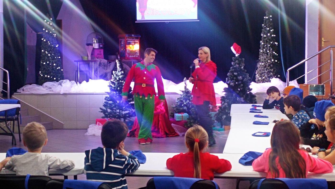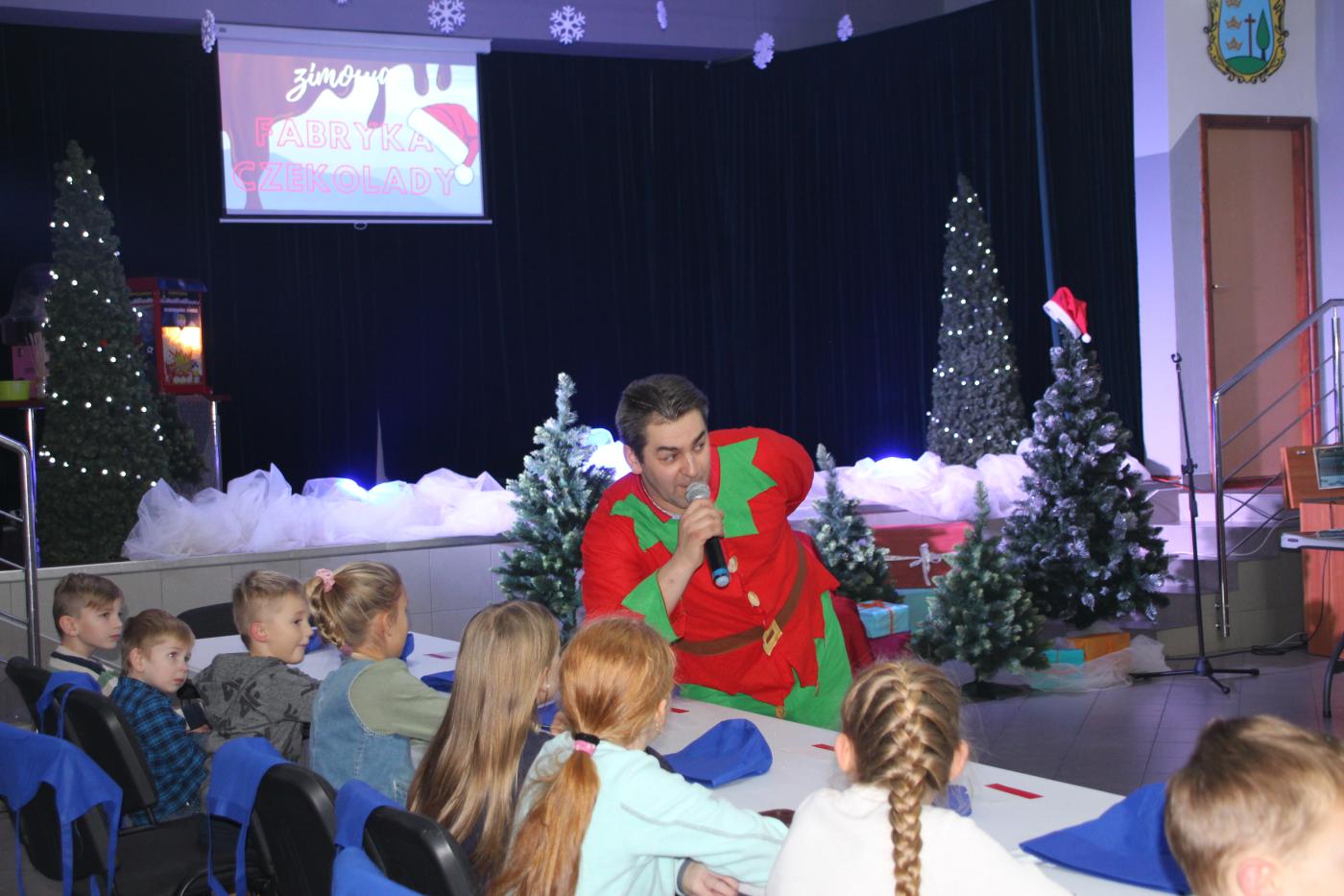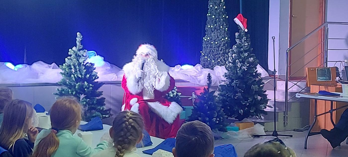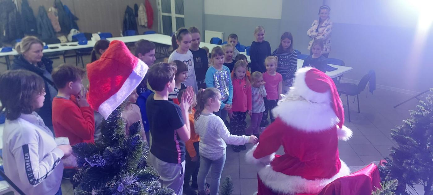 Ogromną radość sprawił dzieciom kolejny gość w stroju Mikołaja, który zaprosił wszystkich do wspólnej zabawy, czym rozbawił zebranych i wprowadził w świąteczny nastrój.