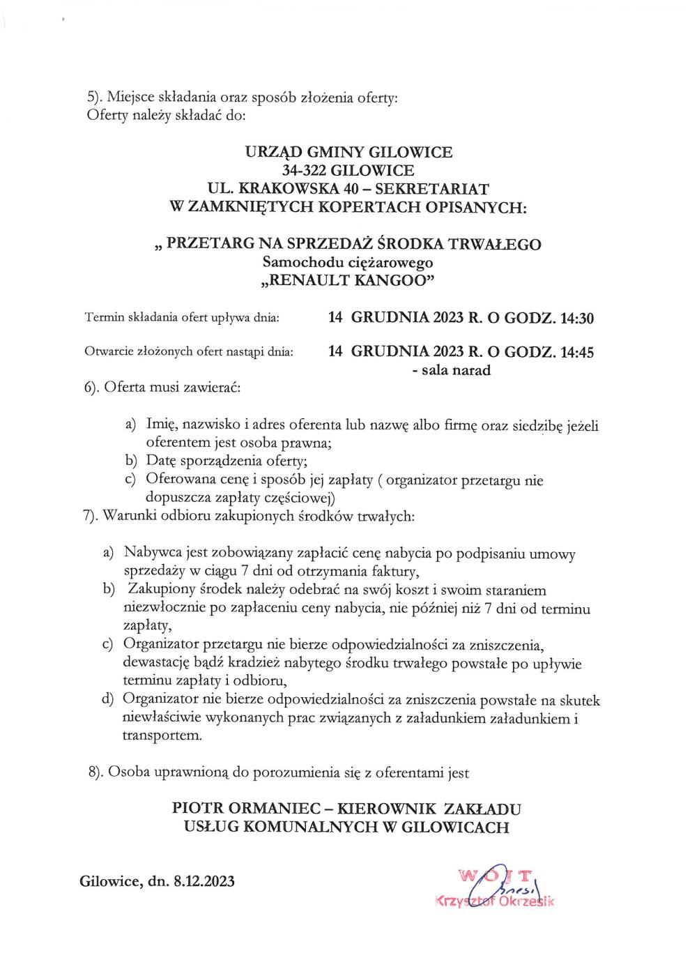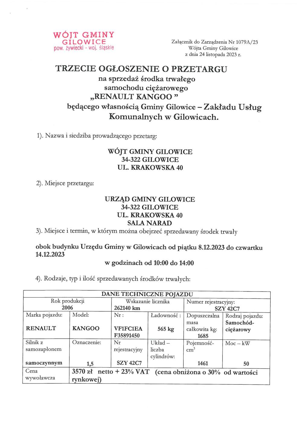 12.12.2023 TRZECIE OGŁOSZENIE O SPRZEDAŻY SAMOCHODU Galeria zdjęć Kliknij w zdjęcie, aby je powiększyć. Do pobrania trzecie-ogloszenie-o-sprzedazy-samochodu Wróć do listy Poprzedni Następny Drukuj