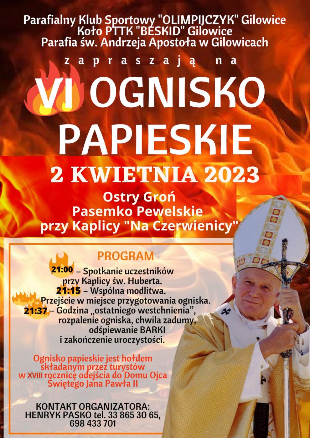 24.02.2023 VI OGNISKO PAPIESKIE W GILOWICACH Szczegóły na plakacie Galeria zdjęć Kliknij w zdjęcie, aby je powiększyć. Wróć do listy Poprzedni Następny Drukuj