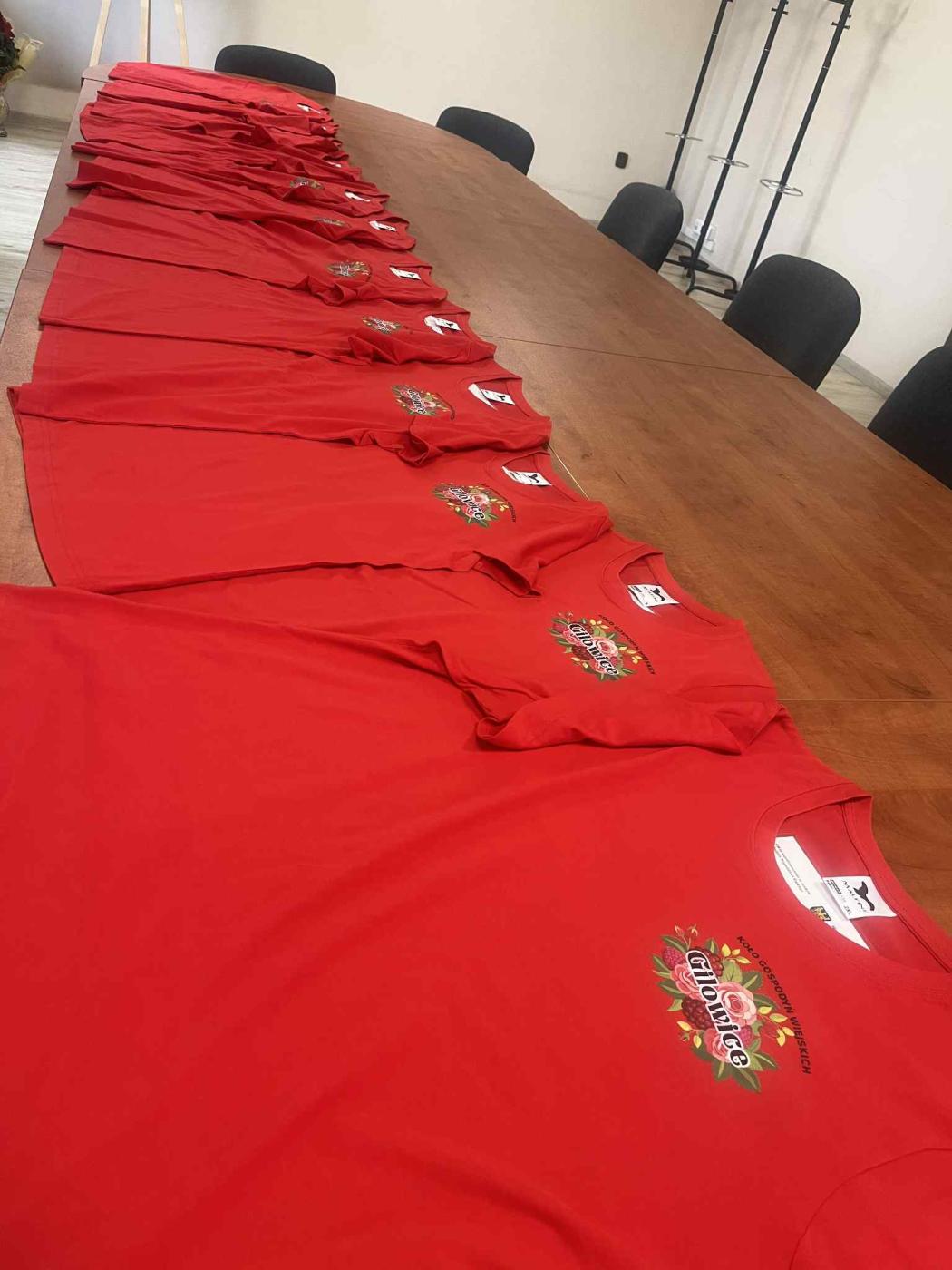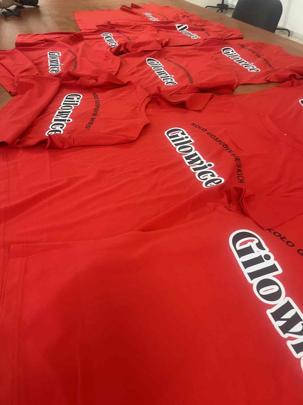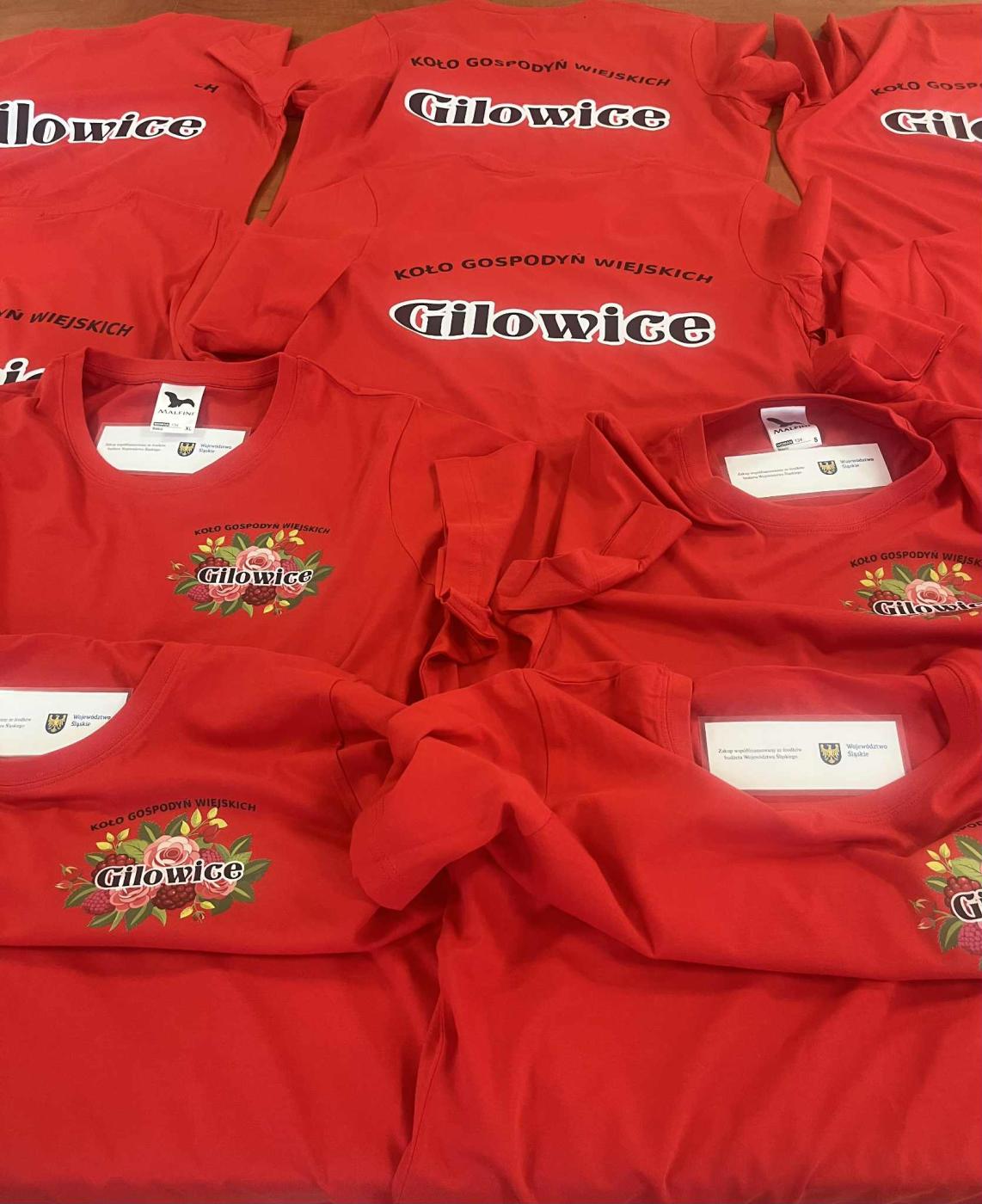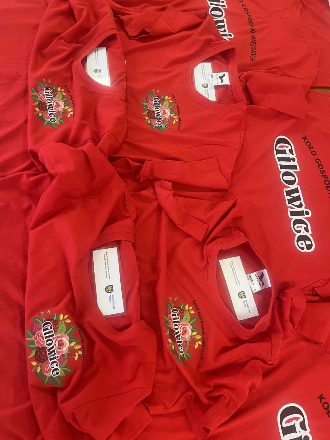 Podczas warsztatów członkinie KGW Gilowice otrzymały piękne, czerwone podkoszulki z logiem koła oraz z informacją o dofinansowaniu, stanowiące utożsamienie z KGW Gilowice oraz niezbędną część ubioru podczas wielu eventów, w których uczestniczą.