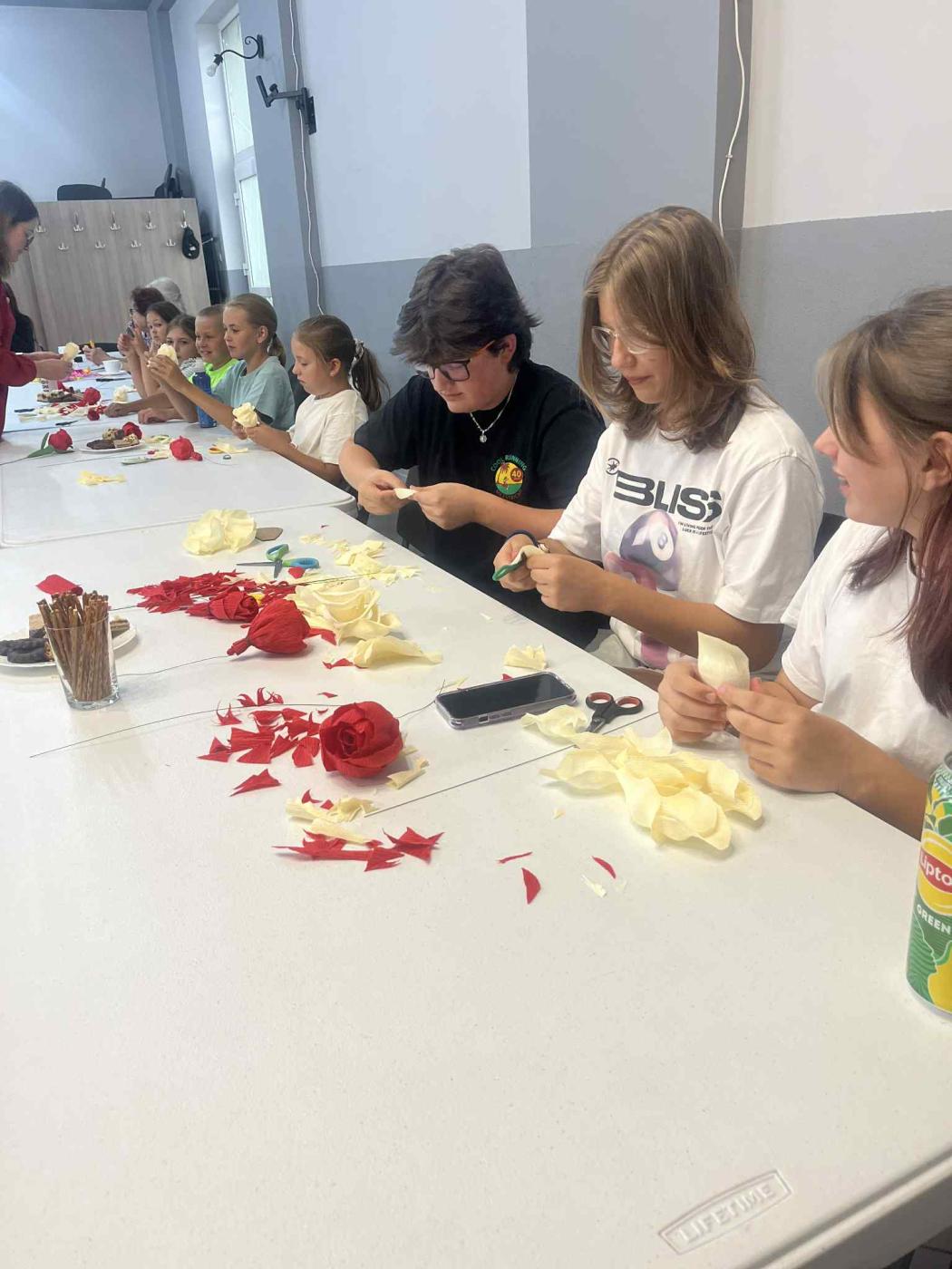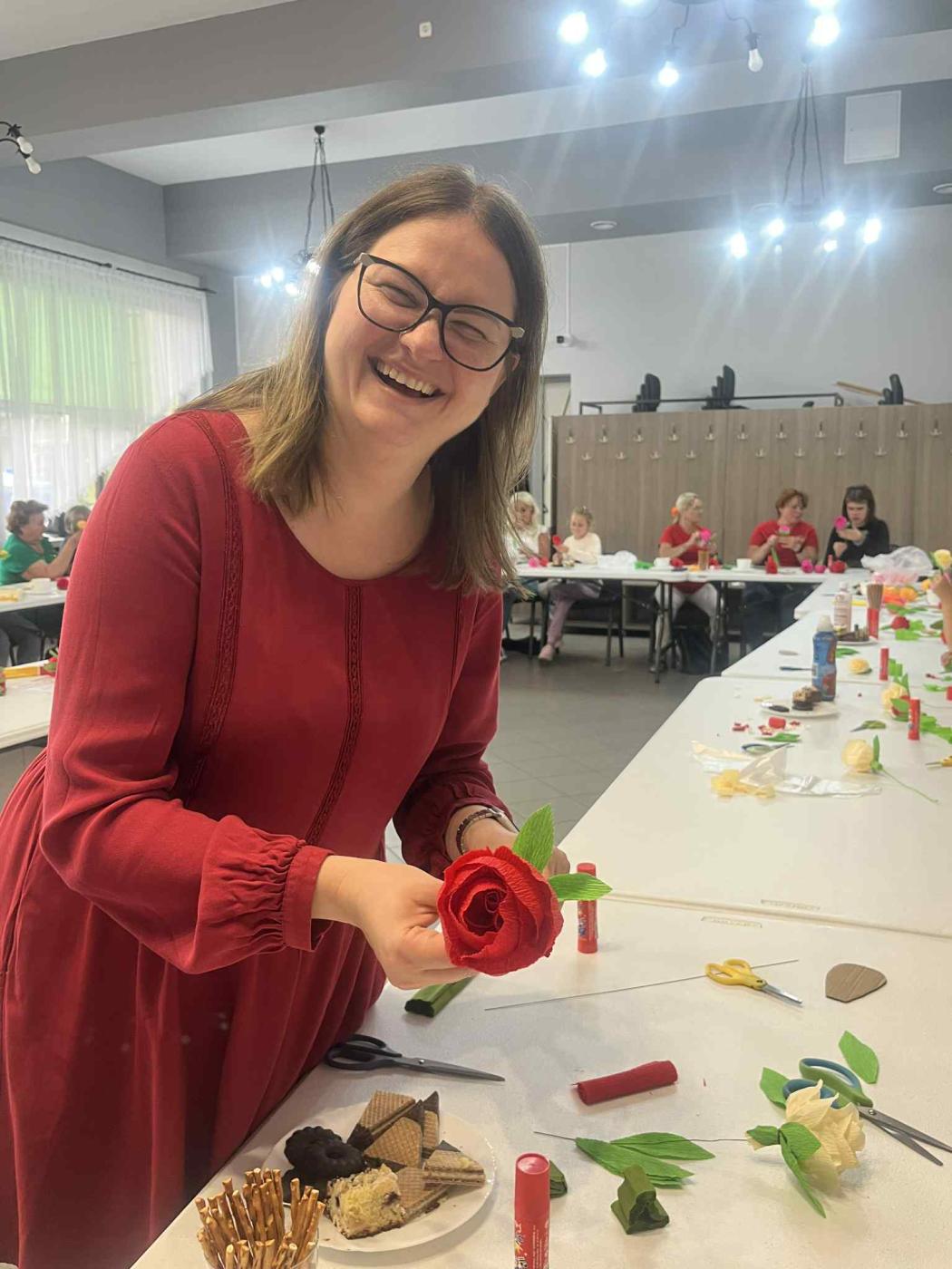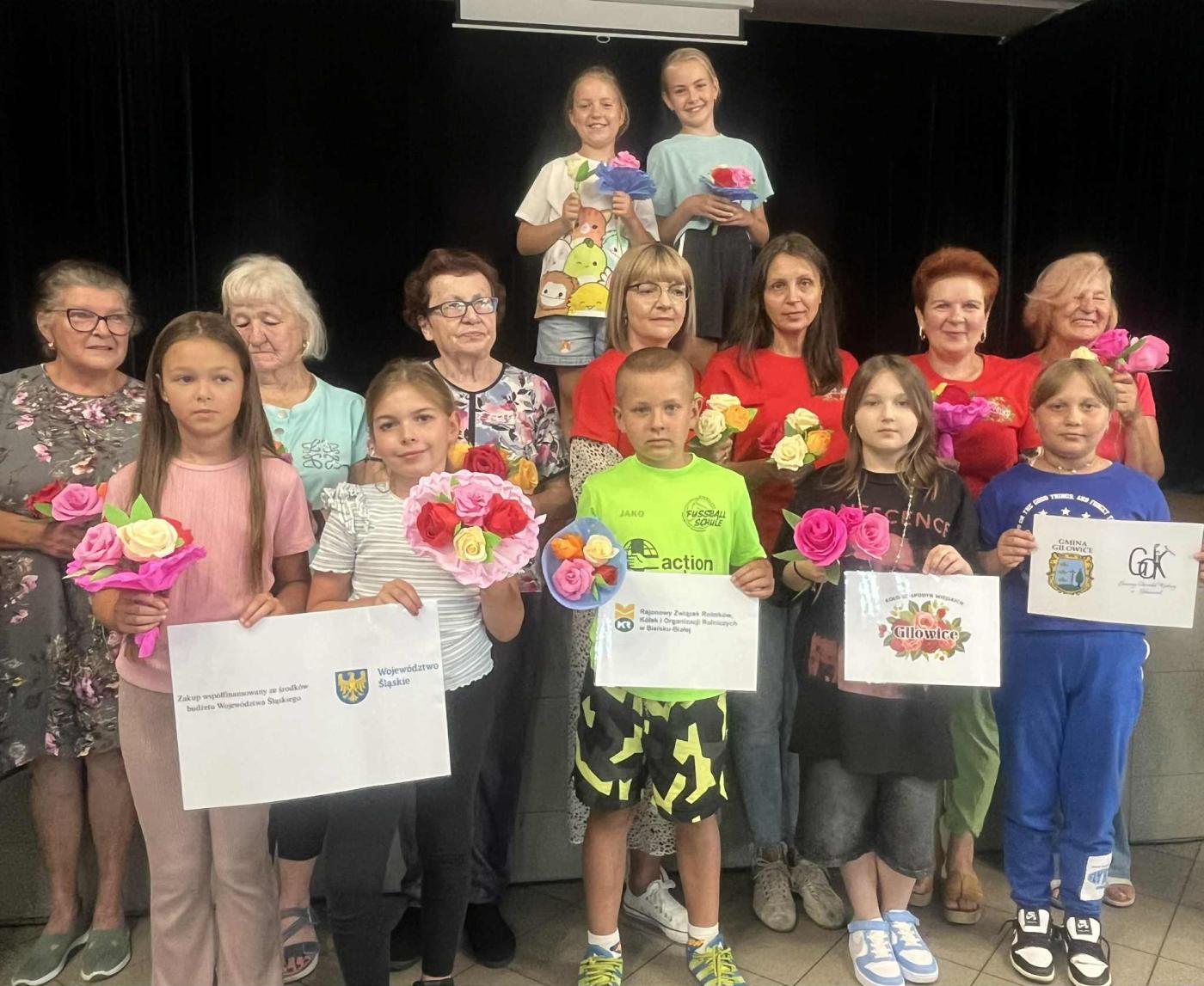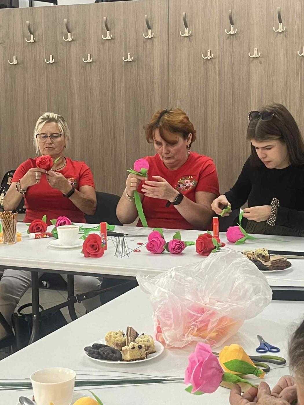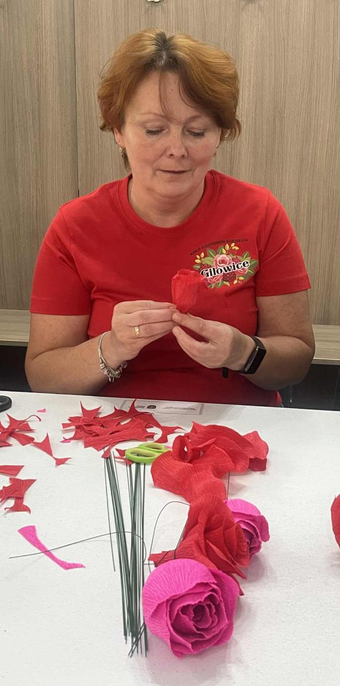 Na warsztaty zaproszono członkinie innych kół, dzieci i młodzież z grupy plastycznej działającej przy GOK Gilowice oraz wszystkich pasjonatów tegoż rękodzieła. Niezmiernie ważnym okazał się fakt, iż bibułkarstwo ma szerokie grono zainteresowanych w naszej gminie, także z perspektywy wielopokoleniowej, gdyż na spotkanie przybyły mamy z dziećmi, babcie z wnuczkami. Podstawowym tematem warsztatów były róże. Kwiat ten wyrażający najgłębsze uczucia bez użycia słów, w dodatku własnoręcznie wykonany z krepisy, będzie pięknym symbolem i pamiątkom dla członkiń KGW Gilowice z wrześniowego wydarzenia, a dla pozostałych uczestników warsztatów - umiejętnością, którą nie każdy jest wstanie przyswoić.