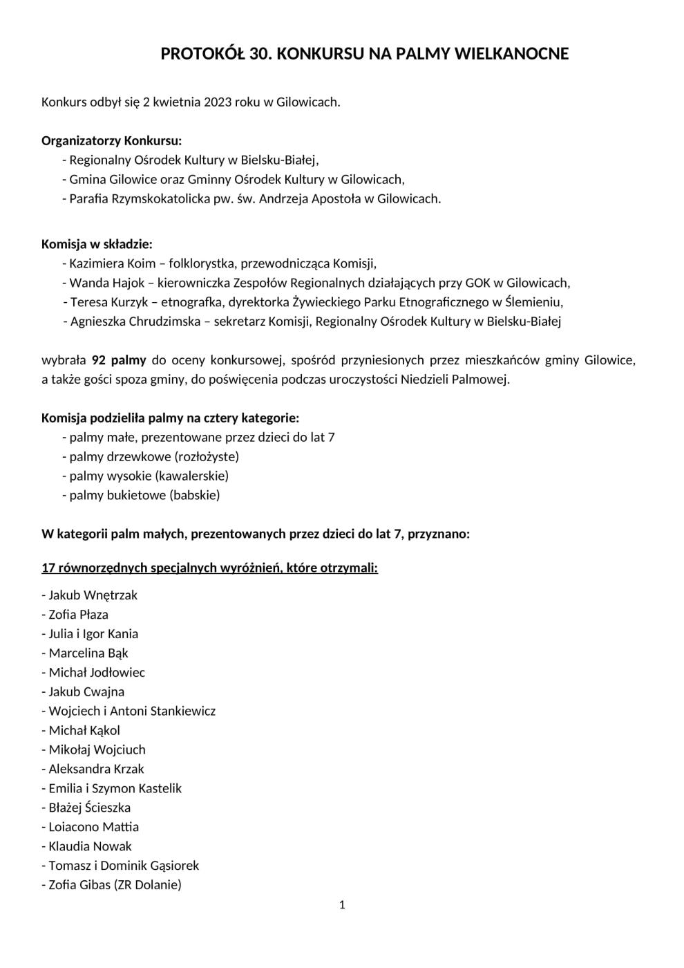 PROTOKÓŁ 30. KONKURSU NA PALMY WIELKANOCNE