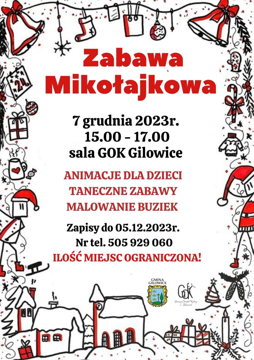 01.12.2023 Zabawa Mikołajkowa Wójt Gminy Gilowice oraz Gminny Ośrodek Kultury w Gilowicach zapraszają na ZABAWĘ MIKOŁAJKOWĄ Obowiązuje akcent mikołajkowy oraz obuwie zamienne. Szczegóły na plakacie. Galeria zdjęć Kliknij w zdjęcie, aby je powiększyć. Wróć do listy Poprzedni Następny Drukuj