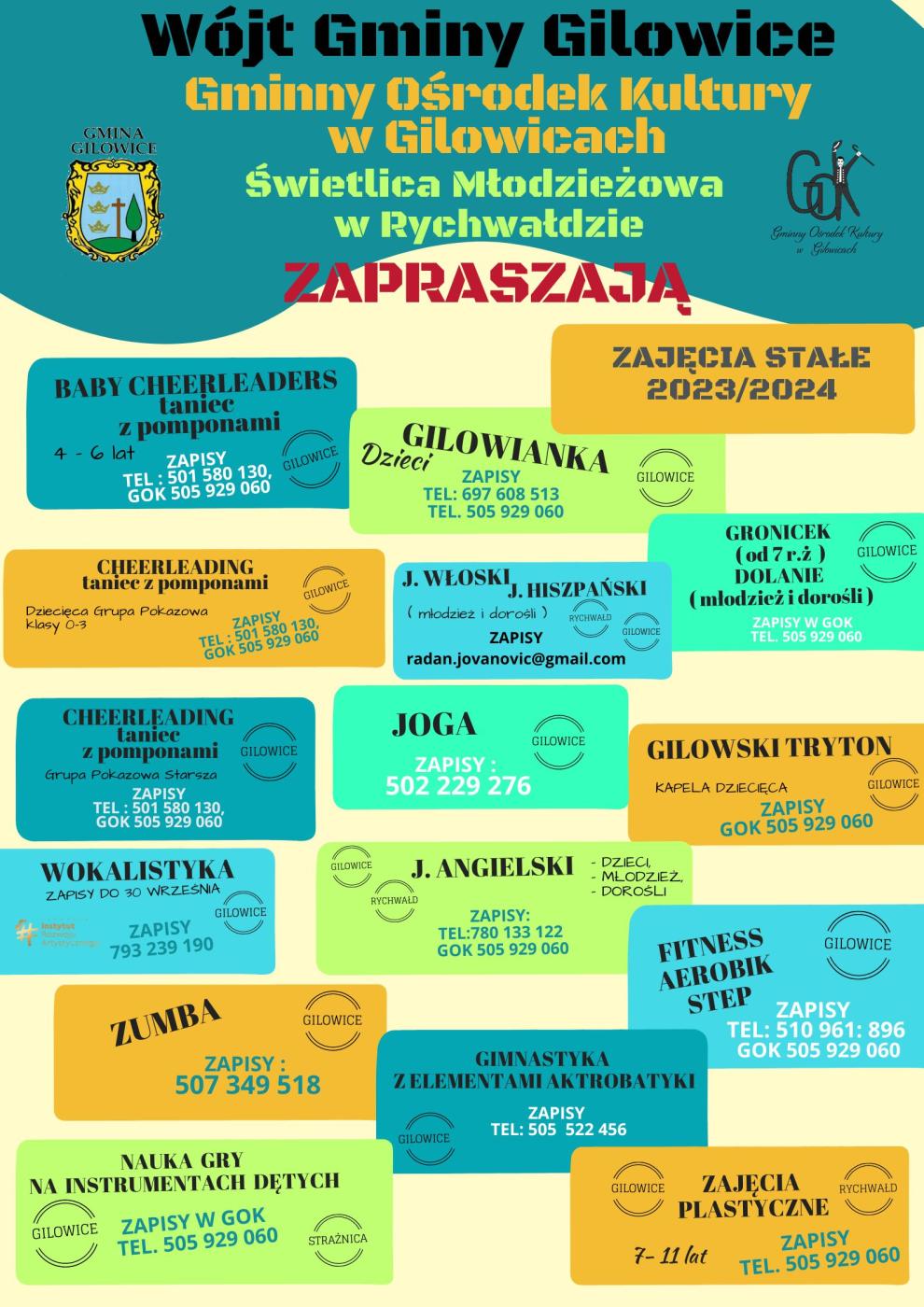 Wraz z nadejściem nowego roku szkolnego, przedstawiamy aktualną propozycję zajęć w Gminnym Ośrodku Kultury w Gilowicach oraz w Świetlicy Młodzieżowej w Rychwałdzie