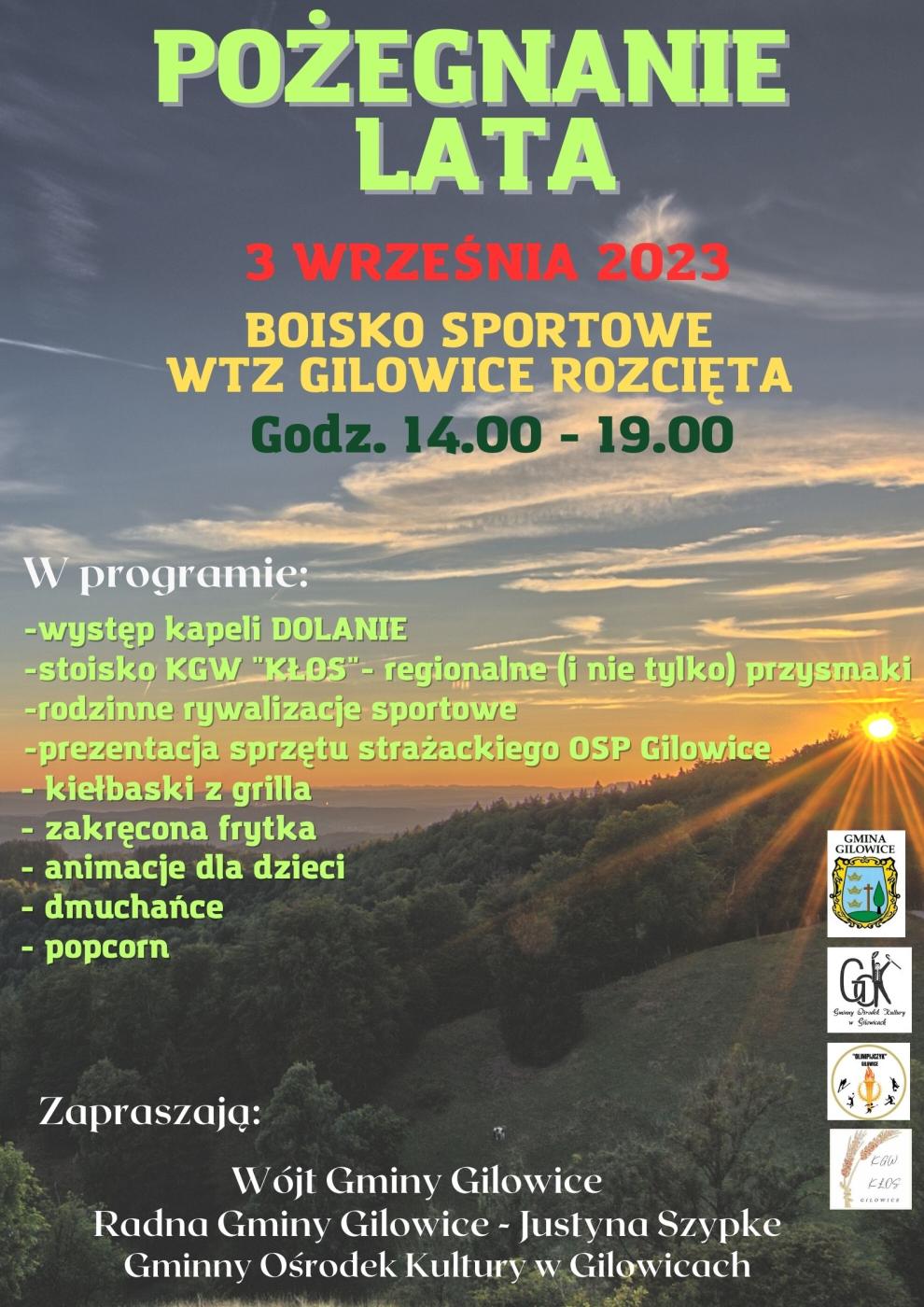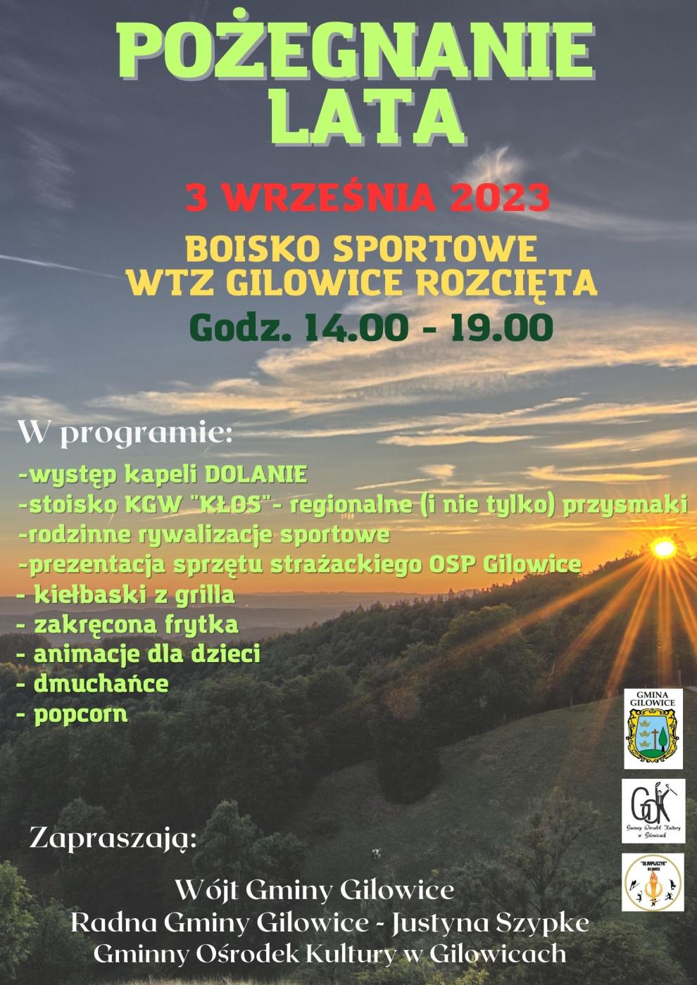 23.08.2023 Zaproszenie na POŻEGNANIE LATA Galeria zdjęć Kliknij w zdjęcie, aby je powiększyć. Wróć do listy Poprzedni Następny Drukuj