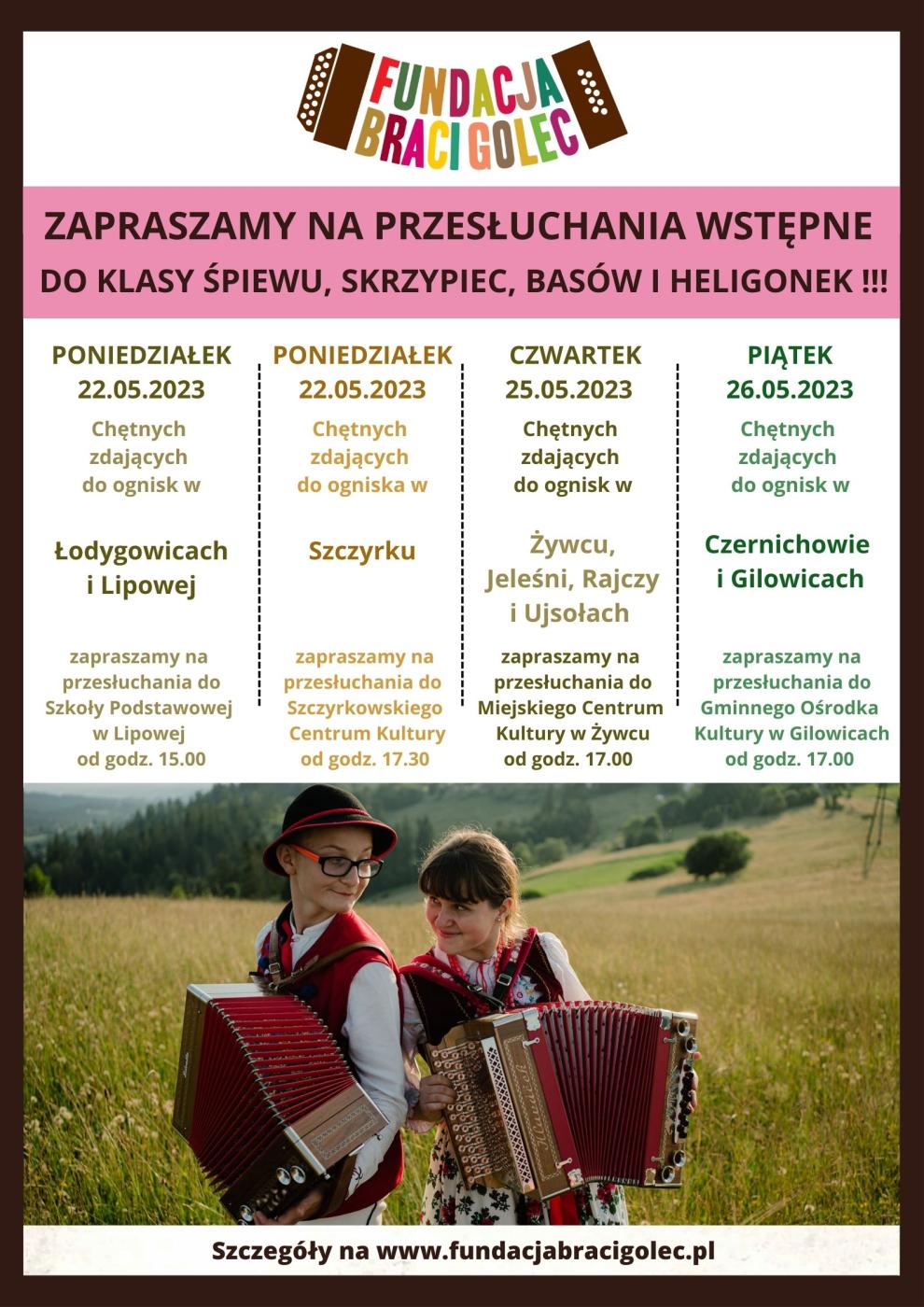 11.05.2023 Zaproszenie na przesłuchanie wstępne - FUNDACJA BRACI GOLEC Galeria zdjęć Kliknij w zdjęcie, aby je powiększyć. Wróć do listy Poprzedni Następny Drukuj