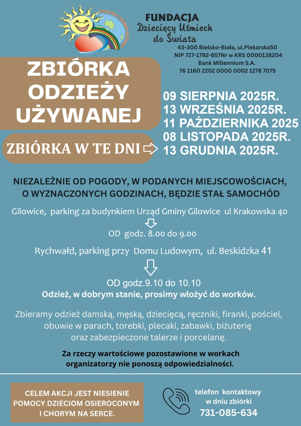 25.07.2025 ZBIÓRKA ODZIEŻY UŻYWANEJ Galeria zdjęć Kliknij w zdjęcie, aby je powiększyć. Wróć do listy Poprzedni Następny Drukuj